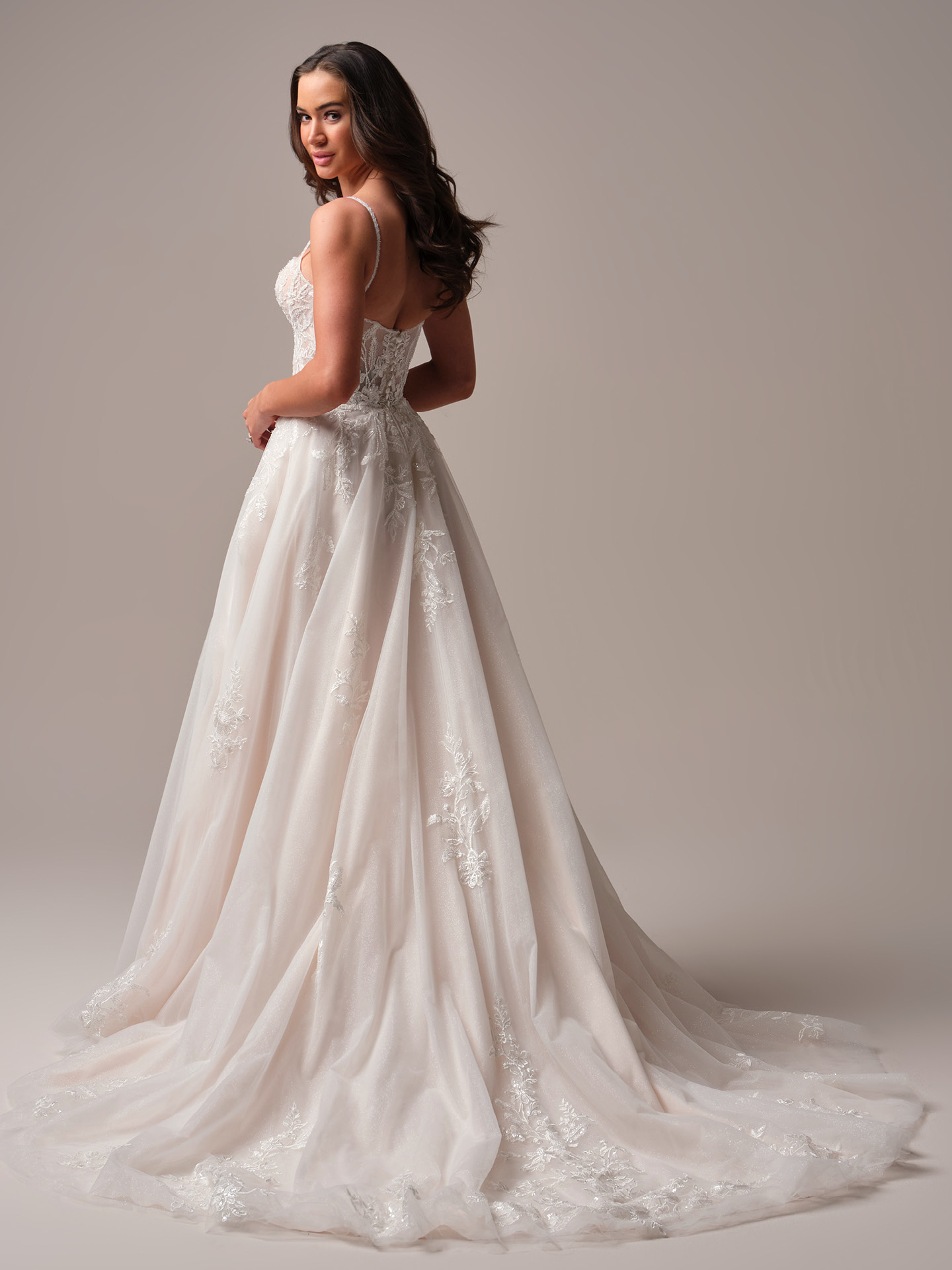 La colección Rebecca Ingram reúne vestidos románticos, ligeros y etéreos, con encajes suaves, tules vaporosos y siluetas que aportan un look natural y luminoso. Son diseños pensados para novias que buscan belleza liviana, femenina y delicada.
